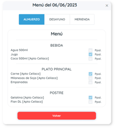 En este módulo, se pueden agregar menús diarios para el comedor escolar. Los docentes y administradores tienen la capacidad de ingresar los menús, incluyendo información relevante como opciones para celíacos, precios, tipo de comida y momento del día en que se ofrecerán. Los padres y alumnos podrán acceder a esta información y conocer los menús disponibles para cada día.