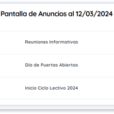 Este módulo permite asignar anuncios a nivel institucional que se mostrarán en la pantalla de inicio de padres, docentes y alumnos. Estos anuncios son noticias importantes y contribuyen a mantener a la comunidad escolar informada sobre eventos, comunicados y novedades relevantes.