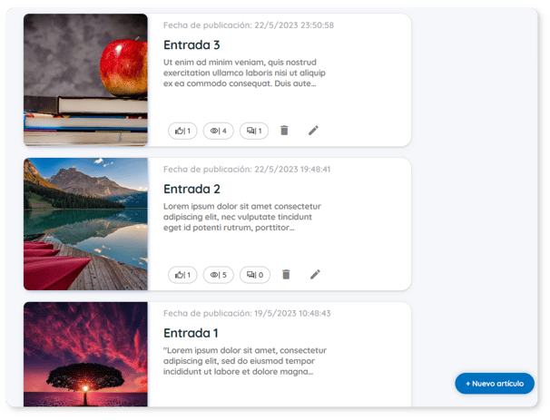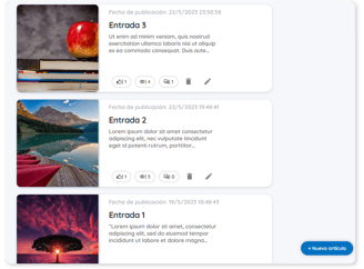 Cada entrada en el blog puede incluir texto, fotos y videos, y los usuarios podrán interactuar con las entradas calificándolas con "Me gusta" o "No me gusta" y dejando comentarios. Esta funcionalidad fomenta la participación y la colaboración entre los miembros de la comunidad educativa.