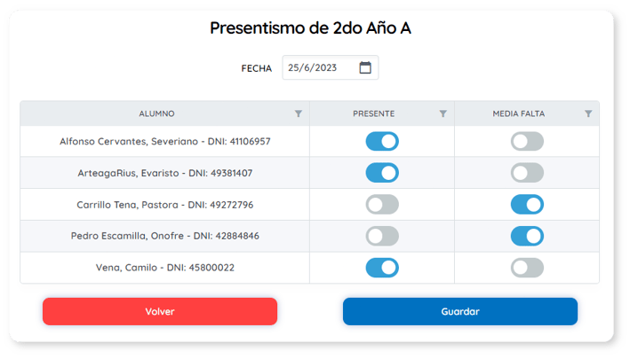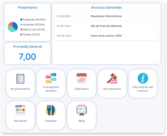 Podrá registrar y visualizar el presentismo de los alumnos, y realizar un seguimiento de los mismos.