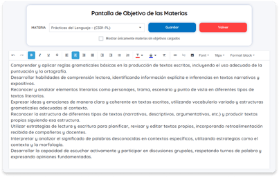 Se podrán personalizar aspectos clave como las orientaciones educativas, el sistema de calificaciones, los conceptos por materia y la asignación de docentes a las materias. Además, se podrá adaptar el sistema a las necesidades específicas de tu institución.