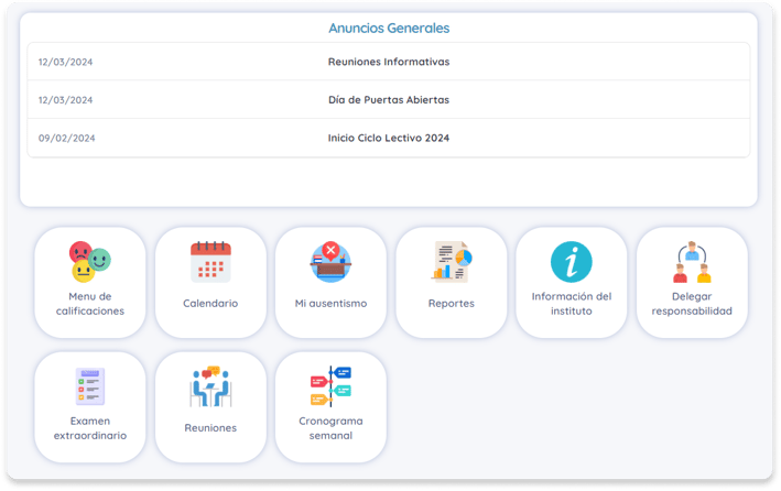 Tendrá acceso a todas las materias que este cursando, junto con toda la información de las mismas, podrá también visualizar los anuncios del instituto.